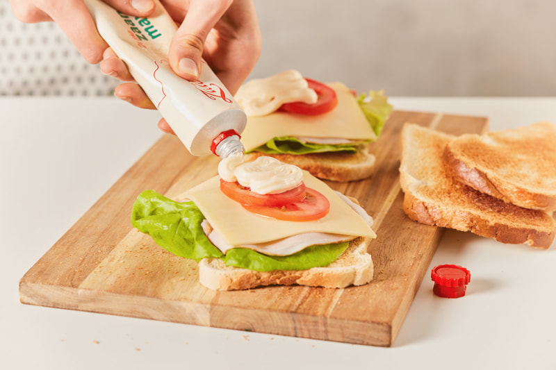 - Besmeer twee boterhammen met Zaanse mayonaise.